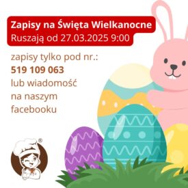 06.03.202602.04.2026Zapisy na Wielkanoc  Ruszają zapisy na wielkanocne wypieki! Mazurki, baby, serniki. Zamów z wyprzedzeniem! Specjalny link uruchomi się 6 marca: pyzipyzi.pl/zapisy-na-wielkanoc