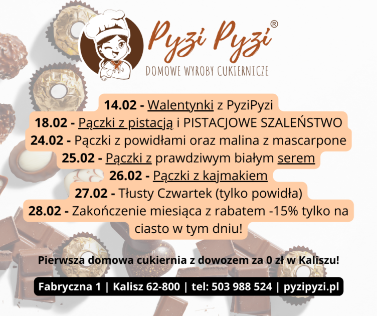 Rozkład wydarzeń LUTY 2025 w PyziPyzi – domowe wyroby cukiernicze